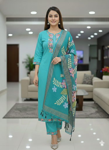 Modern Silhouette: The straight-cut kurta paired with matching trousers provides a sleek and graceful fit suitable for both casual outings and festive occasions.