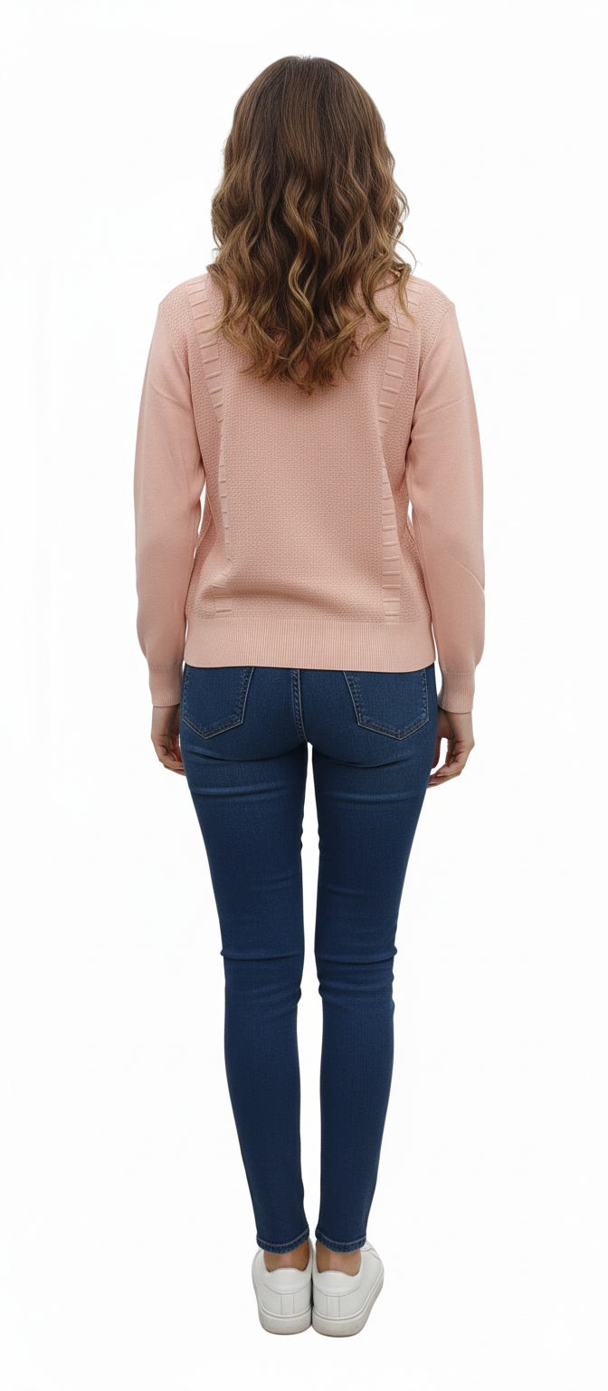 Sophisticated Detailing: Features a unique vertical "ladder" knit texture on the shoulders and back, creating a tailored, high-end look.